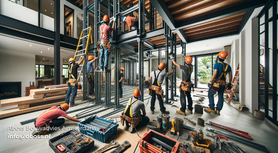 Bij het toevoegen van nieuwe secties aan een woning, zoals een uitbouw of een extra verdieping, zorgen stut- en stempelconstructies ervoor dat het bestaande gebouw ondersteund wordt tijdens de bouw.